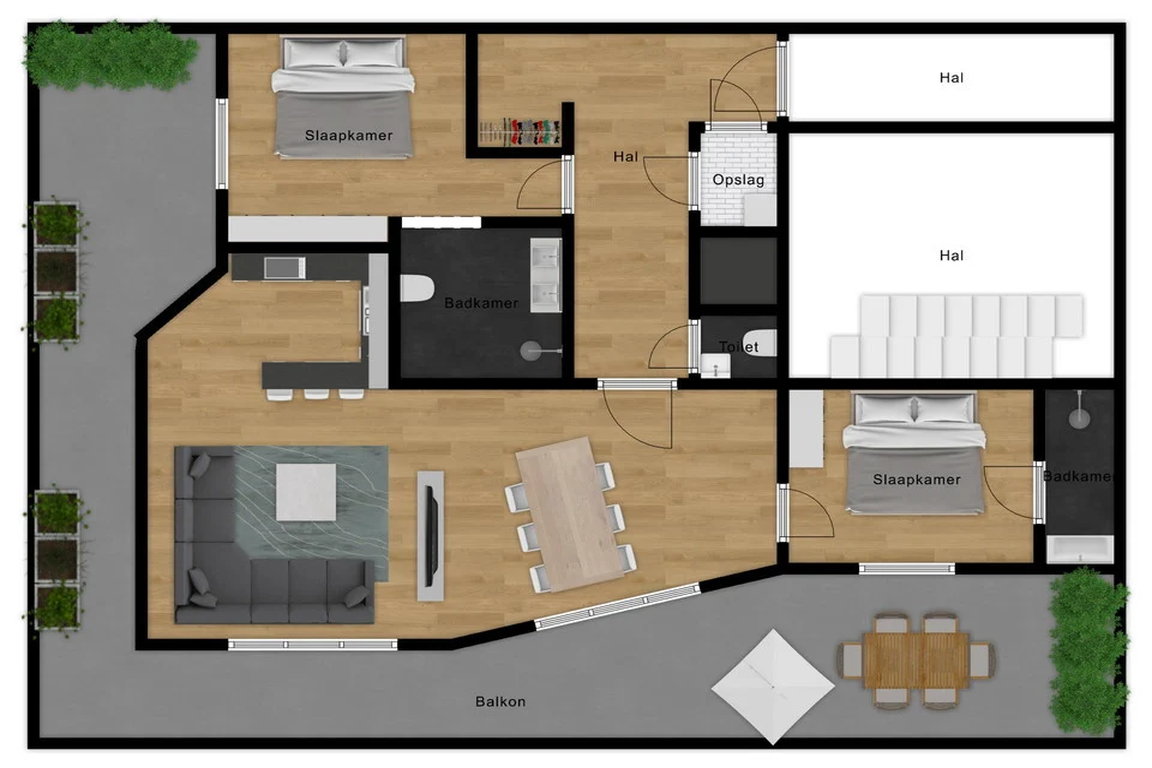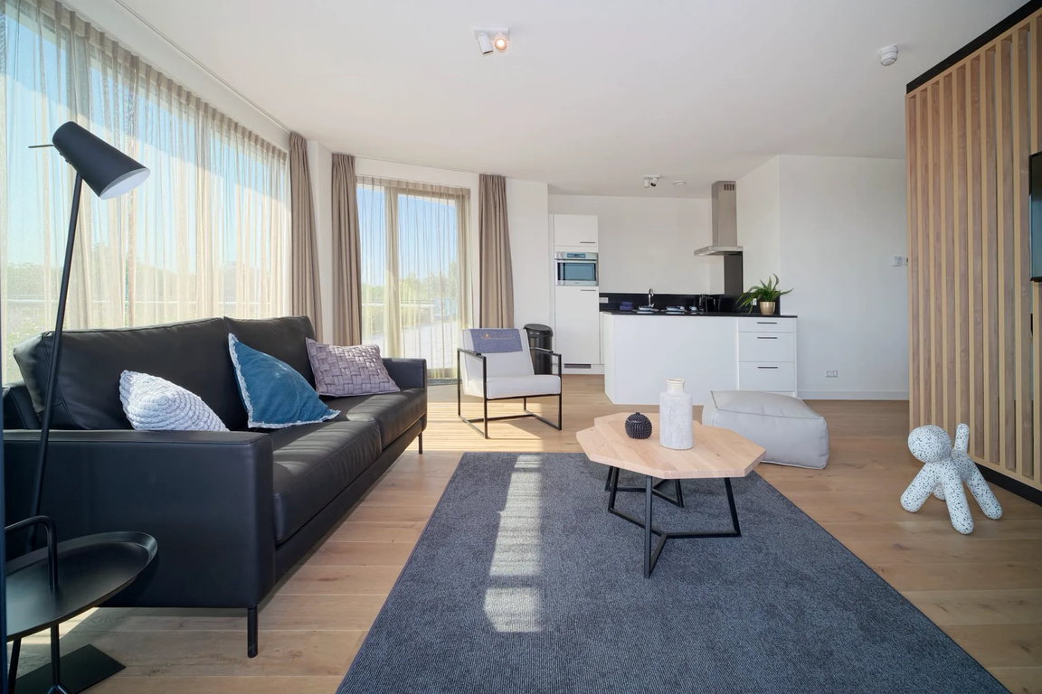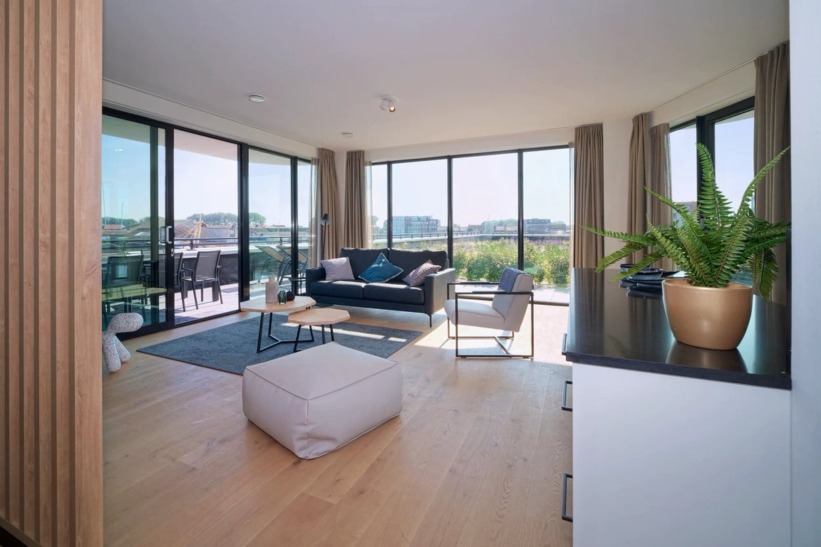 Vom Wohnzimmer aus gelangen Mieter auf die großzügige Terrasse, die sich seitlich der Ferienwohnung erstreckt. Hier finden sie immer einen schönen Platz, um die Aussicht zu genießen. Die Terrasse ist mit Möbeln ausgestattet, so dass Mieter hier auch herrlich speisen können, während sie den Blick über Breskens und den Hafen genießen. Ein Abstellraum mit Waschmaschine und Trockner steht zudem zur Verfügung. Die Ferienwohnung bietet einen eigenen Parkplatz in der Tiefgarage mit privater Ladestation für das Mieter-Elektroauto. Zudem können Fahrräder sicher im allgemeinen, abschließbaren Fahrradschuppen untergestellt und während des Aufenthalts kostenloses WLAN genutzt werden.