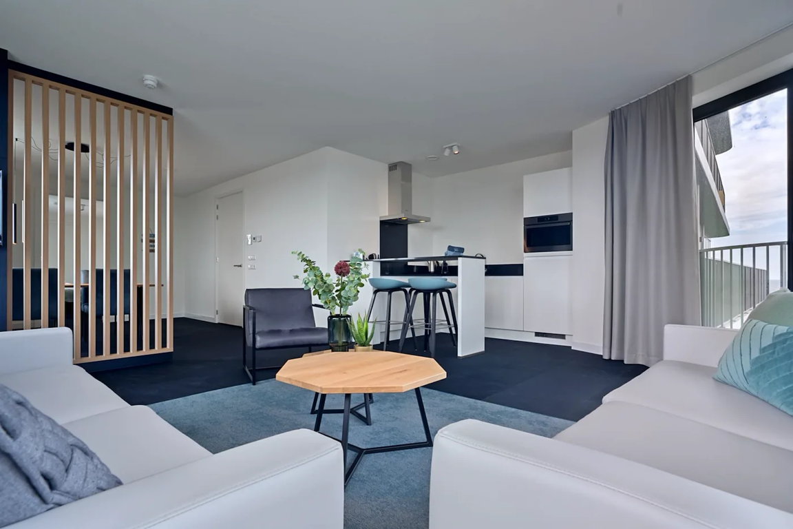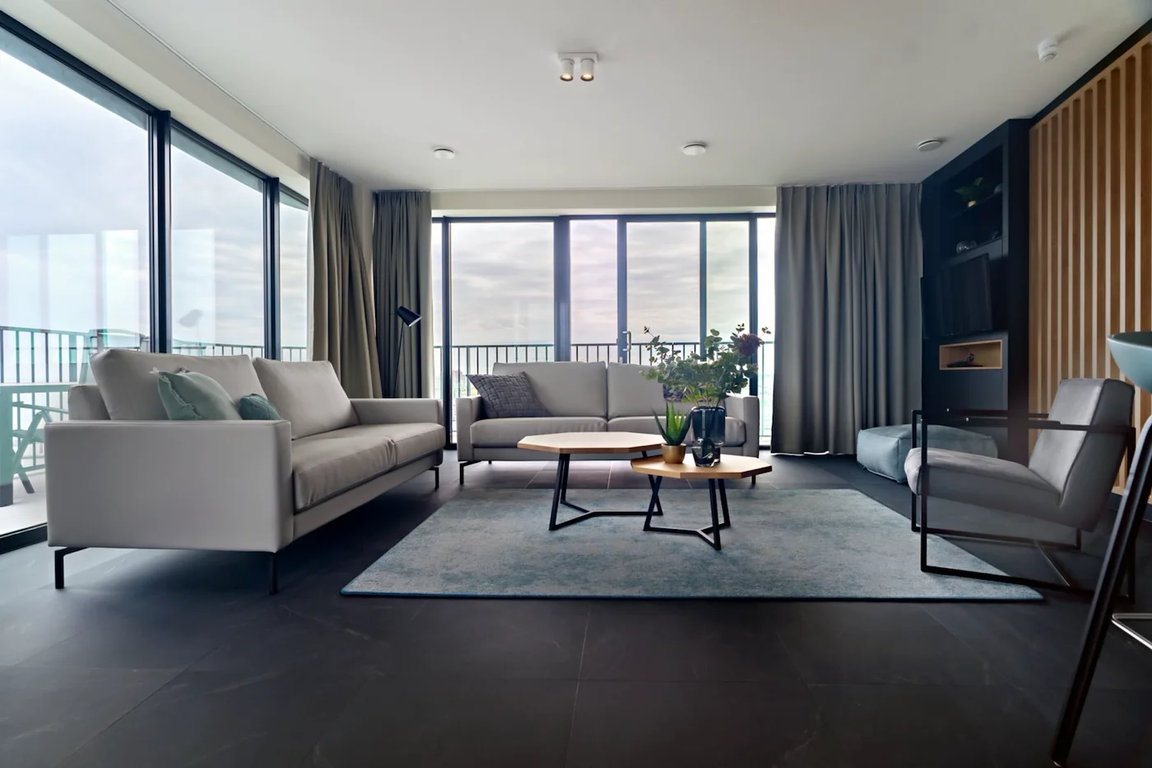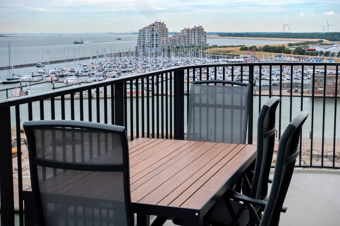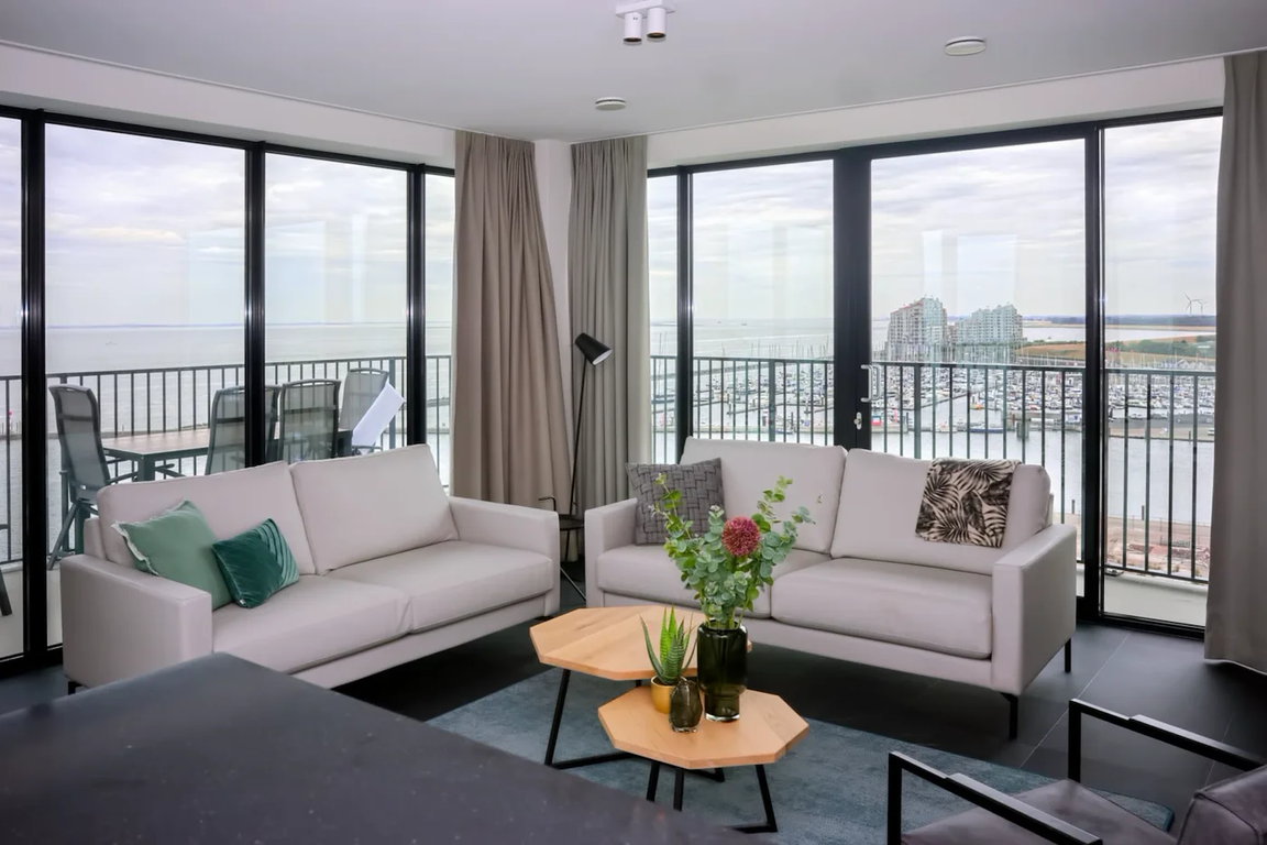 Die luxuriöse Ferienwohnung Sea Pearl Panorama in Breskens ist für bis zu 4 Personen geeignet. Gelegen im oberen Teil des Wohnkomplexes in den Etagen 6 bis 10, ist das Appartement sowohl über eine Treppe als auch über einen Aufzug bequem erreichbar und hat eine großzügige Nutzfläche von ca. 102 m2. Dank seiner Ecklage bietet sie einen Panoramablick auf die Westerschelde, die Nordsee und den Hafen von Breskens. Das Wohnzimmer besticht durch moderne Einrichtung und ist mit einem Smart-TV mit Streaming-Funktion ausgestattet. Eine gemütliche Essecke und eine voll ausgestattete offene Küche mit allen Annehmlichkeiten, darunter eine Kühl-Gefrierkombination, ein Kombi-Backofen, eine Nespresso-Maschine und eine Geschirrspülmaschine, runden das Angebot ab. Vom Wohnzimmer aus gelangen Mieter auf den Balkon, der sich entlang der Seite der Ferienwohnung erstreckt. Hier können sie die herrliche Aussicht auf die Westerschelde, die Nordsee und den Hafen von Breskens in vollen Zügen genießen.
