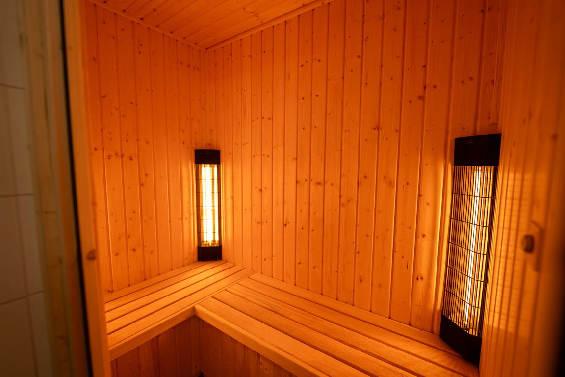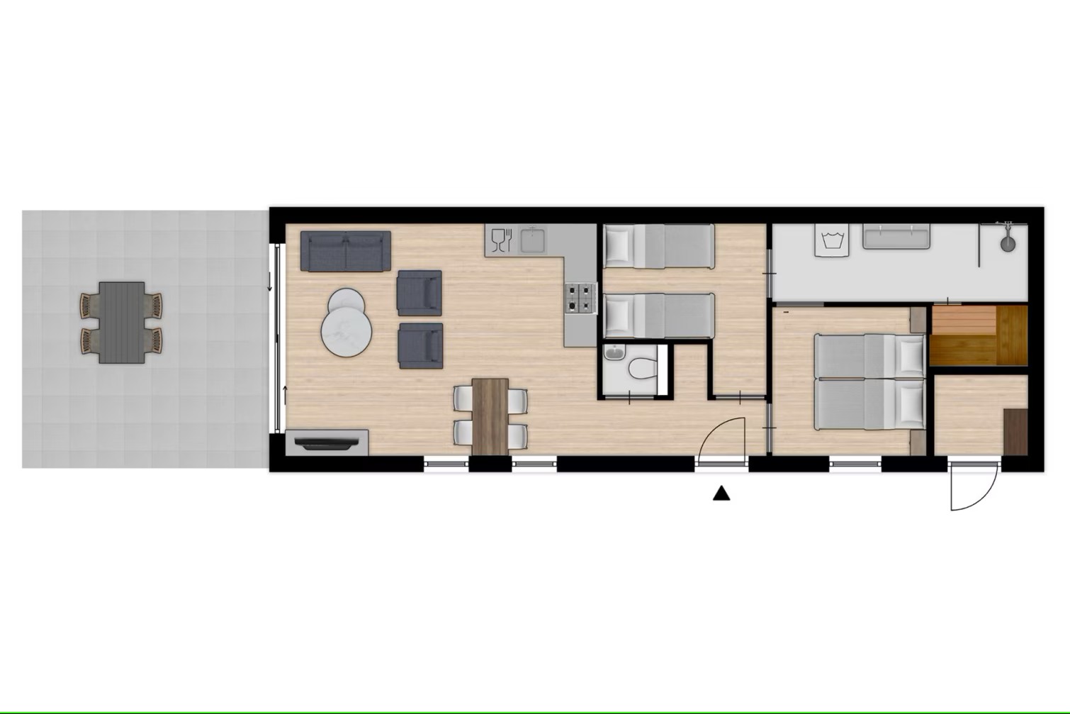 Die freistehende Villa verfügt über zwei Schlafzimmer, die jeweils mit zwei Einzelbetten ausgestattet sind, sowie ein Badezimmer, das mit einer begehbaren Dusche mit Regendusche und einer Infrarotsauna ausgestattet ist – ideal für entspannende Momente nach einem langen Tag. Das Badezimmer bietet zudem eine Fußbodenheizung, und eine separate Toilette ist ebenfalls vorhanden. Der Außenbereich lädt mit einer Terrasse, Gartenmöbeln und zwei Sonnenliegen zum Verweilen und Entspannen an sonnigen Tagen ein. Kostenloses WiFi steht während des Aufenthalts zur Verfügung. Die Villa wurde nachhaltig entwickelt, ist komplett gasfrei und mit Solarpanelen sowie einem Wärmepumpensystem ausgestattet. Zusätzlich bietet der Fernseher Streamingfunktionen, sodass Apps direkt vom Smartphone oder Tablet auf dem Bildschirm angezeigt werden können, wobei du deine eigenen Konten nutzt. Ein eigenes Schließfach sorgt für mehr Sicherheit und Komfort während des Aufenthalts.