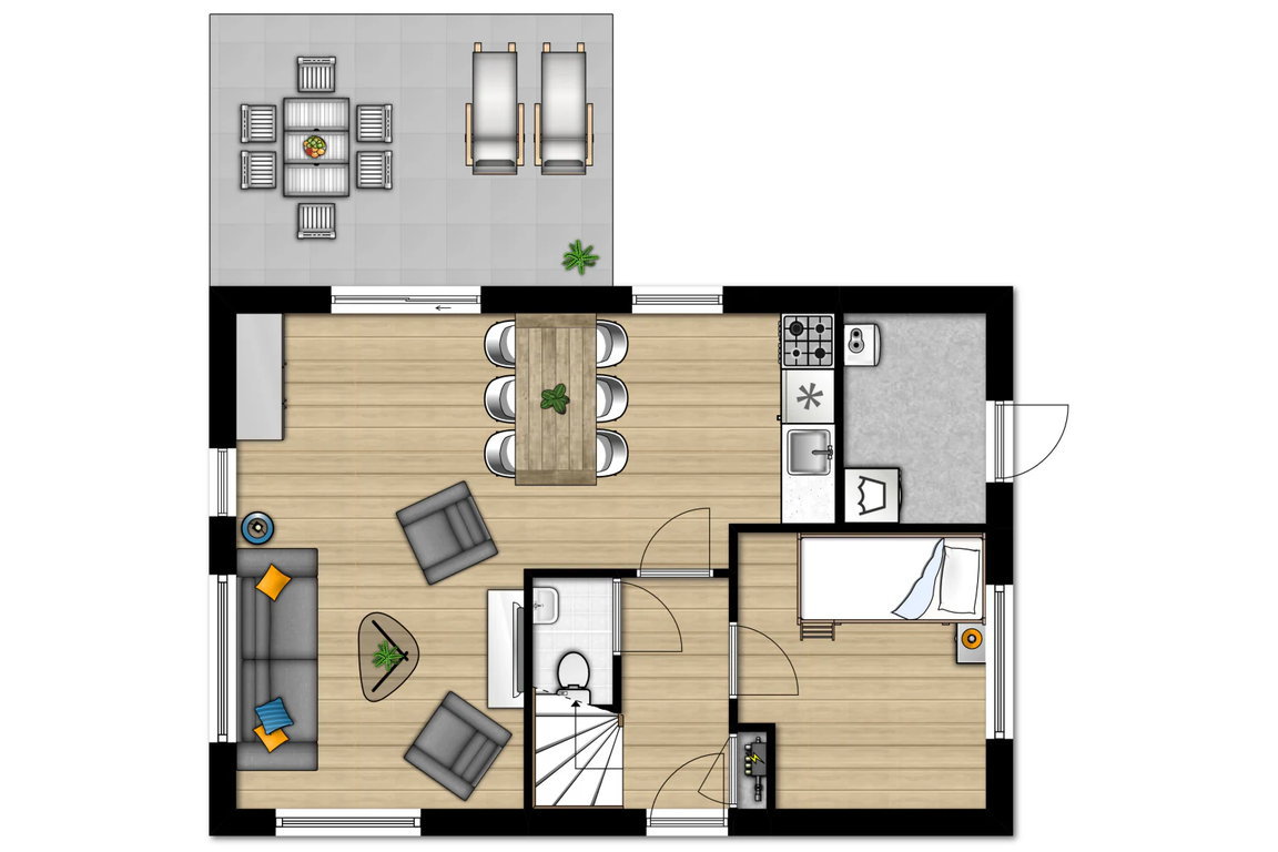 Der modernisierte, freistehende Bungalow des Typs „SAS Komfort“ im Ferienpark „Zeebad“ bei Breskens bietet auf etwa 70 m² Wohnfläche Platz für bis zu sechs Personen und eignet sich hervorragend für Paare, Familien mit Kindern, gemeinsam reisende Paare oder auch Mehr-Generationen-Urlauber, die eine gemütliche und komfortable Unterkunft suchen. Die durchdachte Raumaufteilung mit insgesamt drei Schlafzimmern – eines davon im Erdgeschoss – sorgt dafür, dass sich alle Gäste wohlfühlen können. In den Schlafzimmern stehen bequeme Einzel-Boxspringbetten oder ein Etagenbett zur Verfügung, was besonders für Familien mit Kindern oder Jugendliche ideal ist.