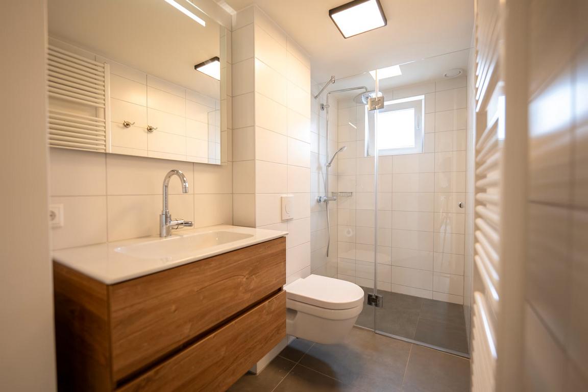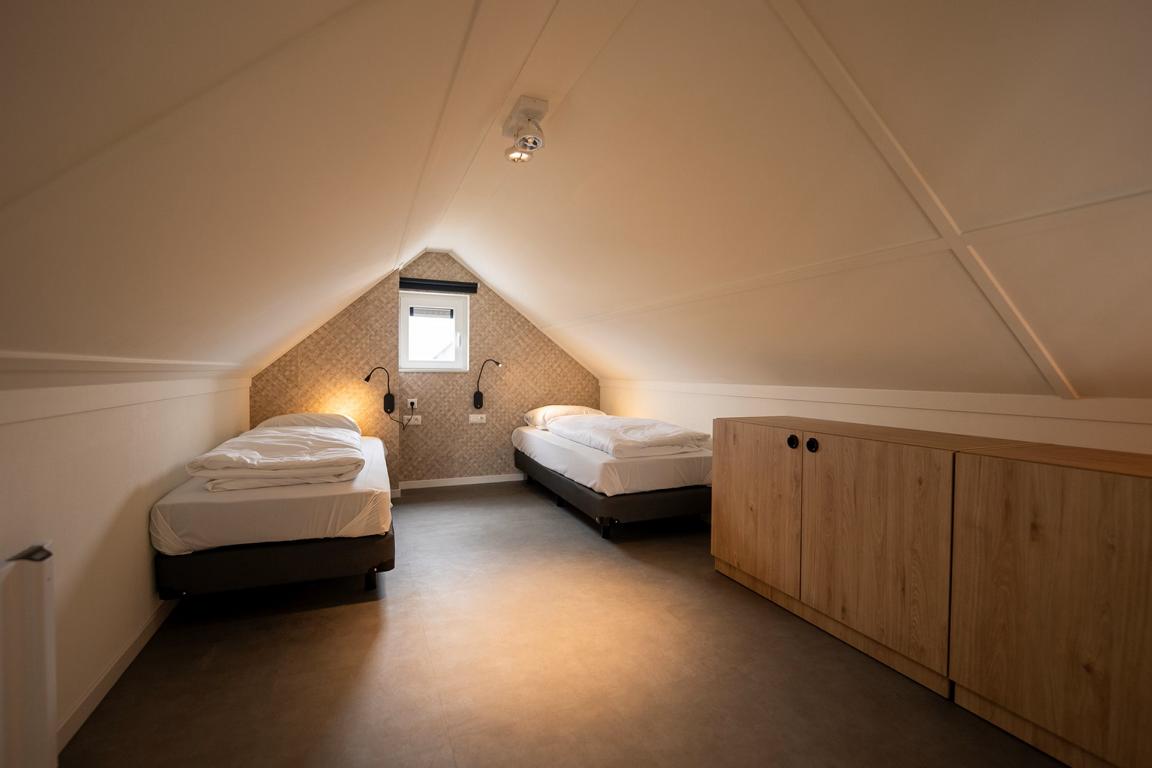 Insgesamt bietet die Villa zwei Schlafzimmer und einen Schlafboden. Ein besonderes Highlight ist das kinderfreundliche Schlafzimmer, das speziell für kleine Koos-Fans gestaltet wurde. Es ist mit einem Etagenbett (Matratzenmaß: 80 x 200 cm), einem gemütlichen Koos-Sitzsack, einer Kreidetafel sowie einer Spielzeugküche mit Geschirr ausgestattet. Das zweite Schlafzimmer verfügt über zwei Einzelbetten. Über eine Treppe im Wohnzimmer gelangt man zum gemütlichen Schlafboden, der ebenfalls mit zwei Einzelbetten ausgestattet ist und sich mit einem Vorhang abtrennen lässt. Im Erdgeschoss befinden sich zwei moderne Badezimmer mit Fußbodenheizung. Ein Badezimmer grenzt direkt an ein Schlafzimmer und ist mit einer begehbaren Dusche ausgestattet, während das zweite Badezimmer neben einer begehbaren Dusche auch über eine Toilette verfügt.