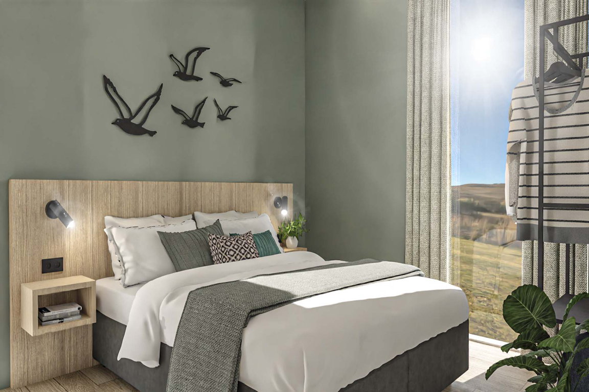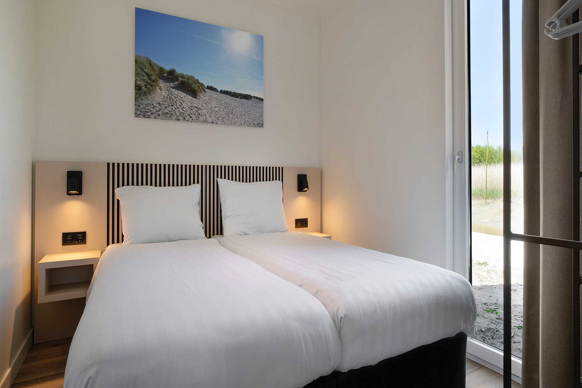 Das 6-Personen-Ferienhaus Rietzanger im Ferienpark „Waterdunen“ von Molecaten bei Breskens bietet auf einer Wohnfläche von 70 qm einen komfortablen Aufenthalt auf einer Halbinsel mitten in der Gezeitenlandschaft des Naturschutzgebietes Waterdunen mit Dünen, Tälern, Wattenmeer und Salzwiesen. Die drei Schlafzimmer des Bungalows haben Einzelbetten, eines davon ist mit einem Etagenbett für Kinder ausgestattet. Vom lichtdurchfluteten Wohnzimmer und der überdachten Terrasse genießen die Gäste einen Panormablick auf die Natur. Die freistehenden Nichtraucher-Ferienhäuser „Rietzanger“ im Molecaten Park Waterdunen haben Zentralheizung, ein Badezimmer mit Dusche und Waschbecken sowie eine separate Toilette.