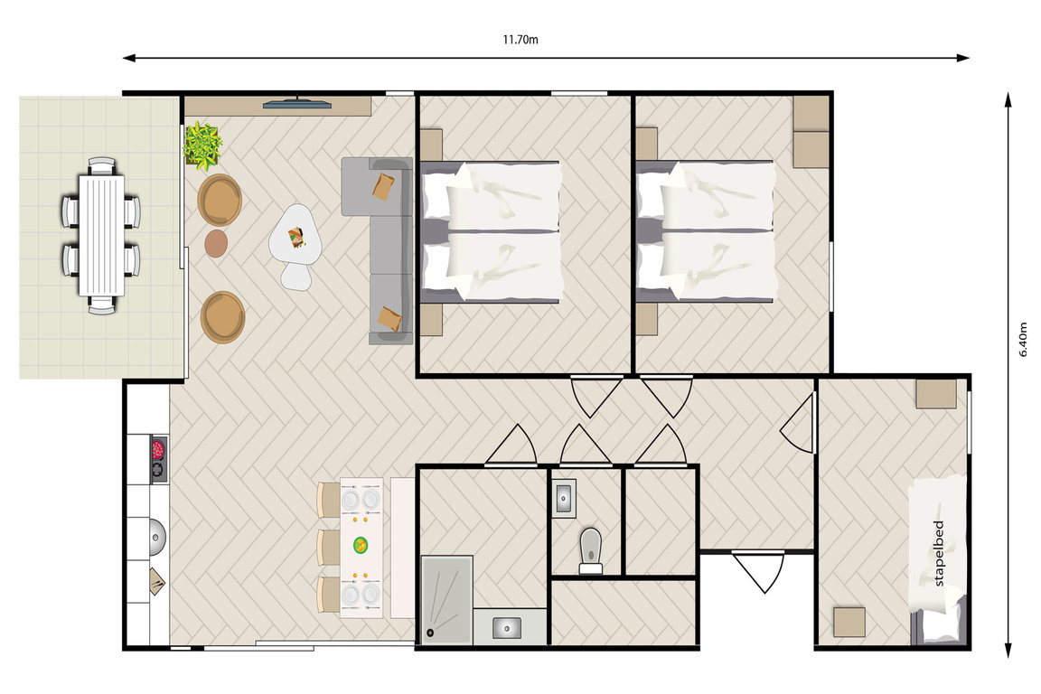 Beispielgrundriss; Ausstattung ähnlich; Fotos: © Molecaten Waterdunen