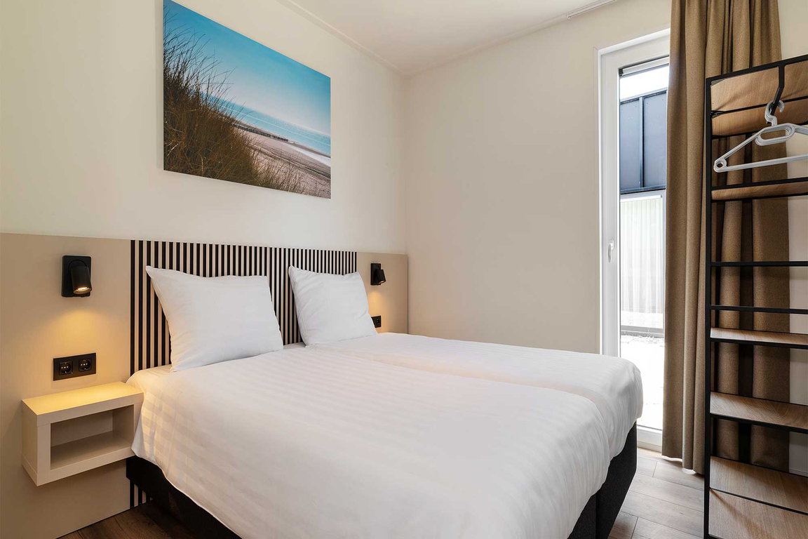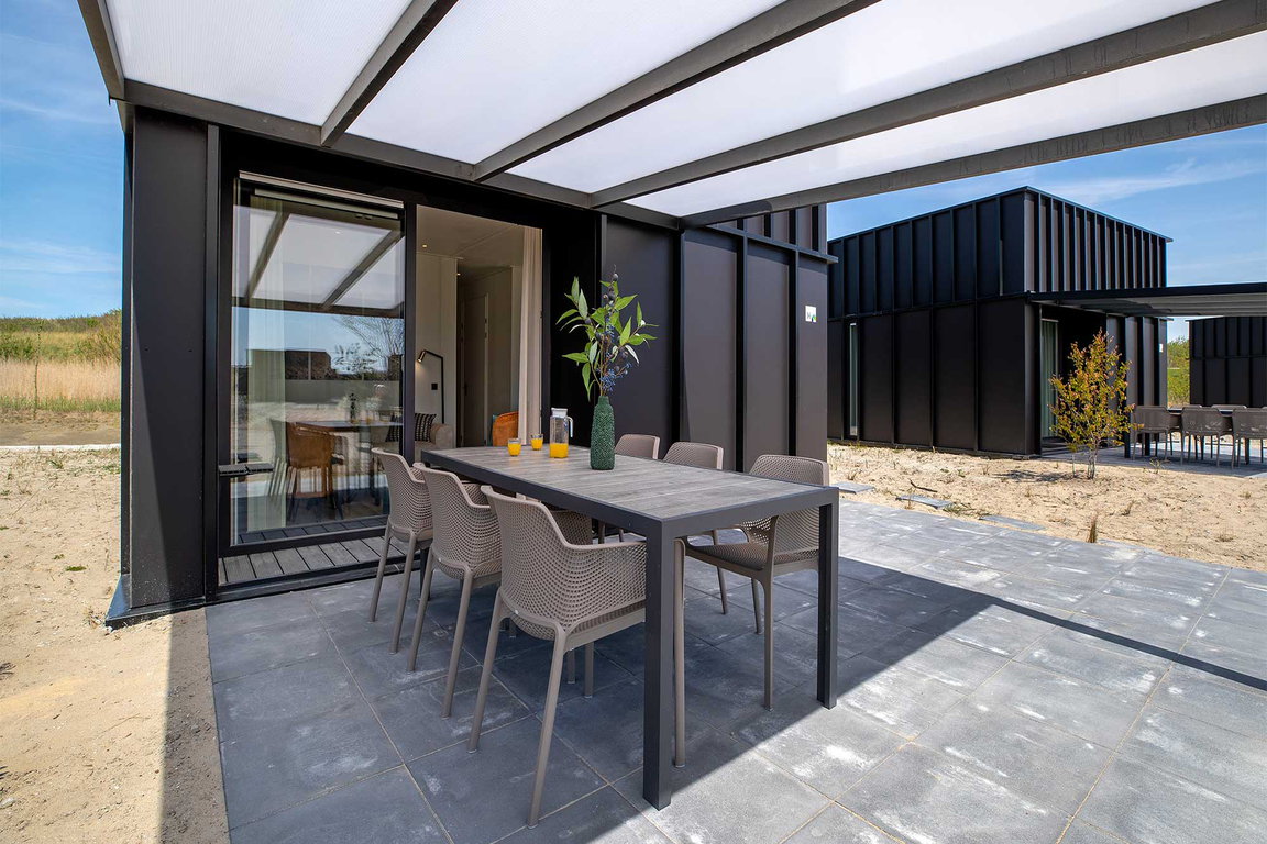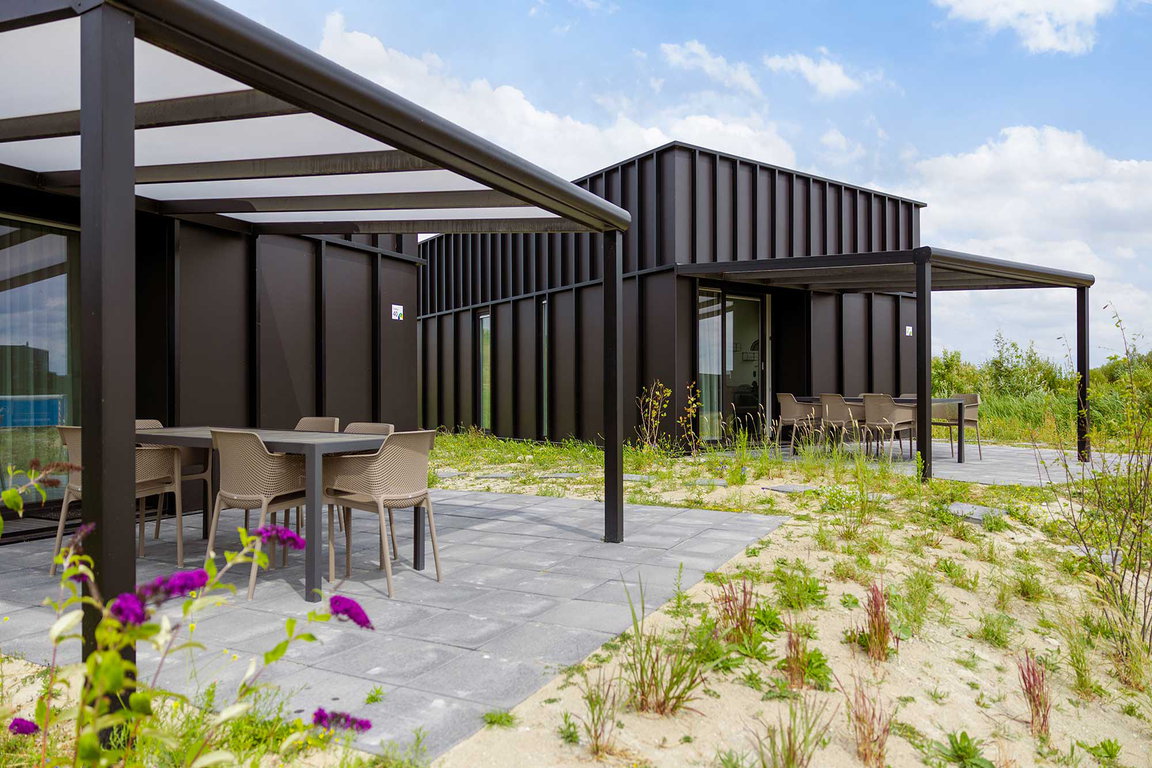 Natur- und Strandliebhaber genießen aus den Ferienhäusern des Typs „Tureluur“ im Ferienpark „Waterdunen“ bei Breskens einen perfekten Blick in die wunderschöne Natur mit Dünen und Prielen. Das Ferienhaus „Tureluur“ liegt zwischen Dünen und dem Gezeitenkanal am Rande der Waterdunen, hat eine Wohnfläche von ca. 70 qm und bietet mit drei Schlafzimmern Platz für bis zu sechs Urlaubsgäste; alle Schlafzimmer haben Einzelbetten, eines ein Etagenbett. Als Komfort bietet „Tureluur“ neben der modern eingericheten Küche mit 4-Gaskochplatten, Kombi-Mikrowelle, Kühlschrank mit Tiefkühlfach, Spülmaschine, Nespresso Kaffeemaschine und Wasserkocher eine überdeckte Terrasse mit Gartenmöbeln sowie eine Ladestation für elektrische Fahrräder.