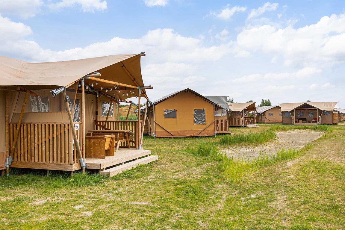 Wasserkocher. Auf der überdachten Terrasse genießen Urlauber Frühstück, Lunch oder Abendessen oder den Blick in die Dünenlandschaft des Naturgebietes „Waterdunen“. Das Glampingzelt ist ein Nichtraucherzet und hat keine Heizung.