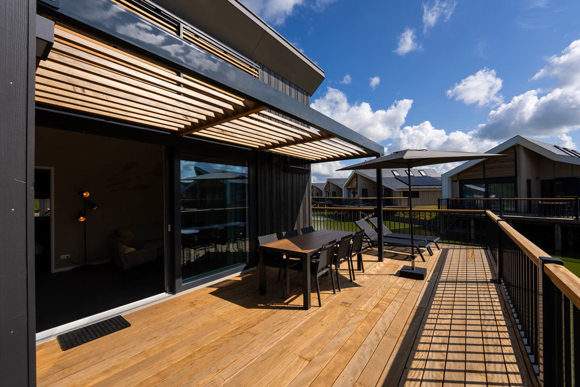 Der direkte Zugang zum Wasser mit eigenem Terrasse über dem Gewässer macht dieses Ferienhaus auf Stelzen besonders idyllisch. Für noch mehr Bequemlichkeit ist die Villa mit einer Waschmaschine und einem Wäschetrockner ausgestattet. Zudem steht während des gesamten Aufenthalts kostenloses WLAN zur Verfügung. Außerdem verfügt die Villa über ein eigenes Schließfach für zusätzliche Sicherheit. Und: Nachhaltigkeit wird hier großgeschrieben: Die Villa ist komplett gasfrei und mit Solarpaneelen sowie einem modernen Wärmepumpensystem ausgestattet.