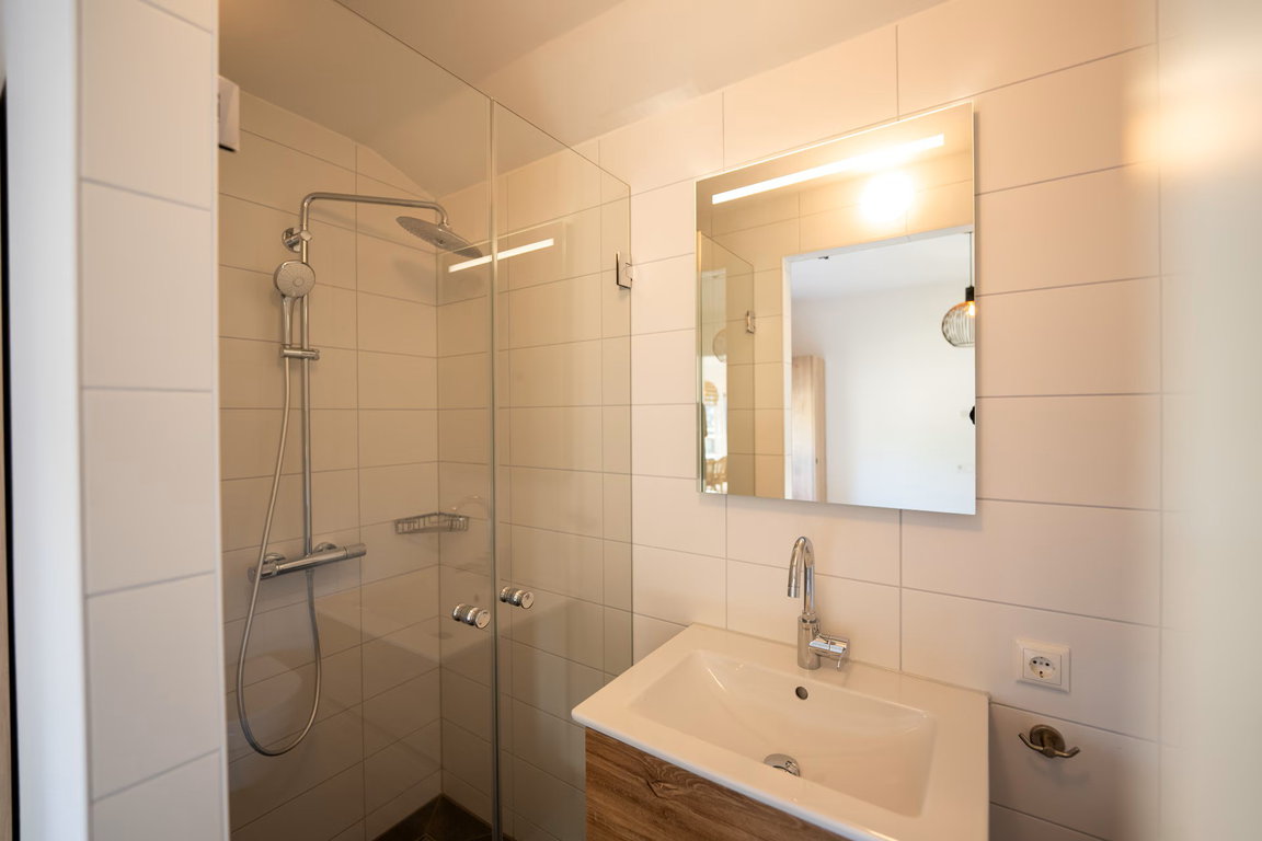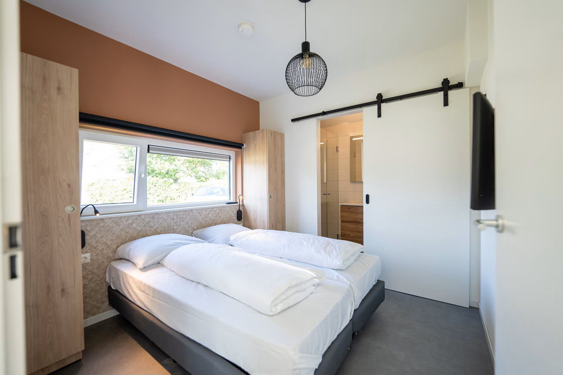 Insgesamt verfügt die Villa über drei Schlafzimmer, die sich alle im Erdgeschoss befinden. Jedes Schlafzimmer ist mit zwei Einzelbetten ausgestattet, sodass ausreichend Platz für einen erholsamen Schlaf geboten wird. Ein Schlafzimmer besitzt ein angrenzendes Badezimmer mit begehbarer Dusche und Toilette. Das zweite Badezimmer ist eine echte Wellnessoase: Neben einer begehbaren Dusche gibt es hier eine Infrarotsauna – perfekt zum Entspannen nach einem ereignisreichen Tag. Eine zusätzliche separate Toilette sorgt für noch mehr Komfort. Im Außenbereich lädt die großzügige Terrasse mit Gartenmöbeln zum Verweilen ein. Zwei Sonnenliegen bieten einen idealen Platz, um die warmen Sonnenstrahlen zu genießen.