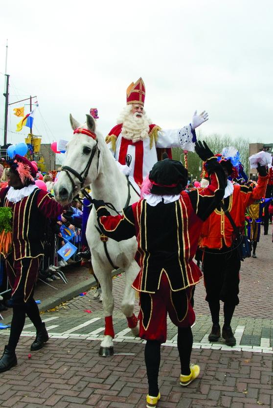 Da der heilige Nikolaus auch der Schutzpatron der Seefahrt ist, kommt der Sage nach der holländische Sinterklaas aus Spanien mit dem Dampfschiff, meist dem „Pakjesboot 12“, in die Niederlande. Damit beide sicher Breskens erreichen, werden sie häufig von einem Rettungsboot der „KNRM“ begleitet oder transportiert. Der Überlieferung nach reitet der holländische Nikolaus dann auf einem Schimmel über die Dächer und kommt mit seinem Helfer „Zwarte Piet“ durch den Schornstein in die Häuser, um den dort wohnenden Kindern Geschenke zu bringen. Er trägt wie der deutsche Nikolaus Bischofskleidung, eine Mitra, einen roten Talar und einen Bischofsstab – und natürlich einen langen wallenden weißen Bart.