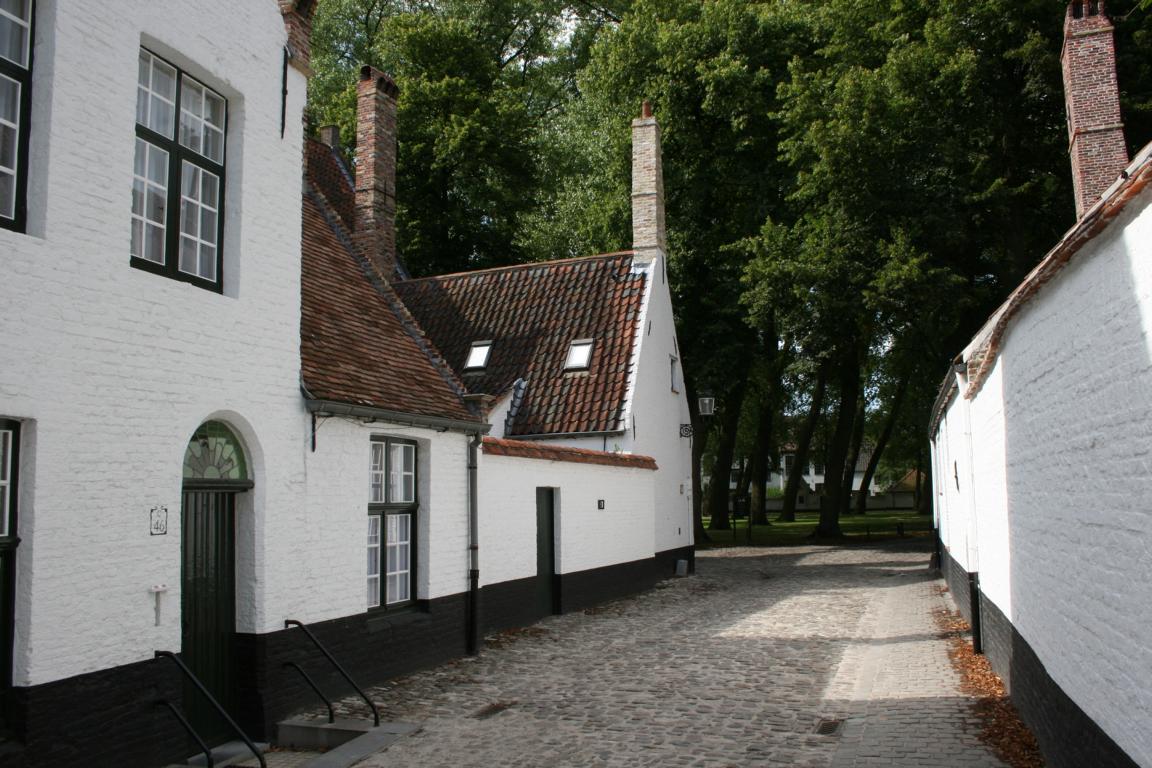 Der Beginenhof in Brügge wurde 1245 als „Fürstliche Beginenhof Ten Wijngaarde“ gegründet; mit seinen weiß gekalkten Mauern, weißgetünchten Giebeln, dem Klostergarten und den machtigen Bäumen ist er ein Hort der Ruhe und Stille mitten im touristisch-turbulenten Brügge. Wer durch die Toreinfahrt hineingeht, spürt sofort die akustisch wie optisch beruhigende Atmosphäre – nur hin und wieder sieht man eine Benediktinerschwestern, die hier leben, über die Wiese den Hof queren. Der Hof mit den arum gebauten Klosterhäusern wurden einst von Frauen („Beginen“) bewohnt, die sich wie Nonnen kleideten und fernab vom weltlichen Treiben hinter den Mauern ein zurückgehaltenes Leben führten ohne den klösterlichen Eid abgelegt zu haben. In der Gesellschaft des Mittelalters entwickelten sich die Beginenhöfe zu Zufluchtsorten für unverheiratete Frauen und Witwen, die in der religiösen Gemeinschaft ihren neuen Lebenssinn suchten.