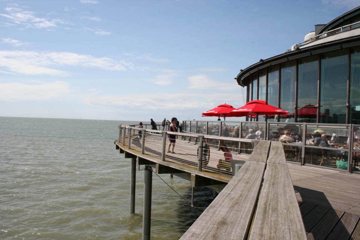 Auf Blankenberges Pier mitten im Meer Teetrinken