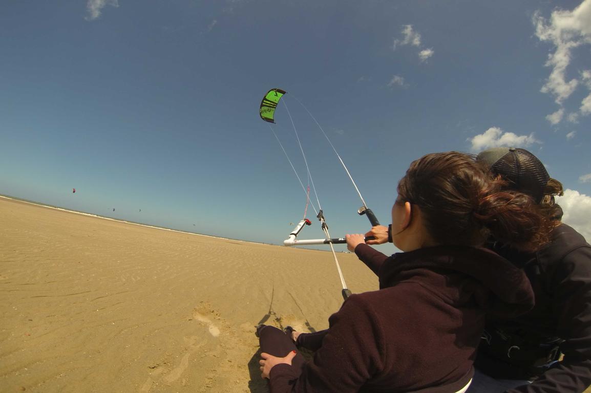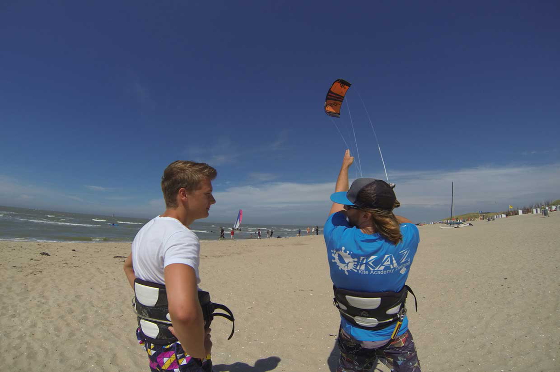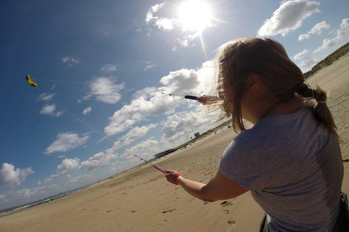 Am Strand vor dem Strandpavillon „De Zeemeeuw“ im Südwesten von Cadzand-Bad lernen Urlauber in der Funsportschule „CADZANDSPORTS“ unter professioneller Anleitung Kitesurfen auf dem Wasser und Powerkiten am Strand. Seit 2011 nutzt CADZANDSPORTSs-Chef Vincent Loof den breiten und flachen „t Zwin“-Strand als Startbasis, um Einsteigern ab zehn Jahren die Kunst des Surfens mit Kite- und Wind-Antrieb zu lehren.