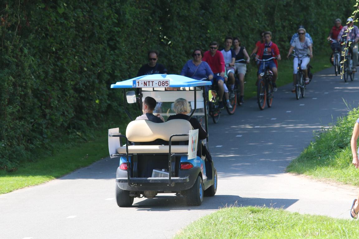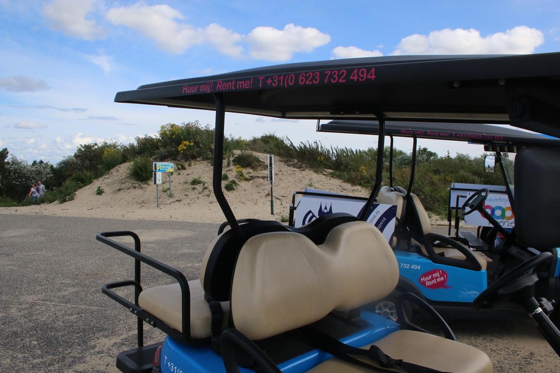 Elektrisch mobil mit Golfwagen und Fahrrad in Cadzand-Bad unterwegs