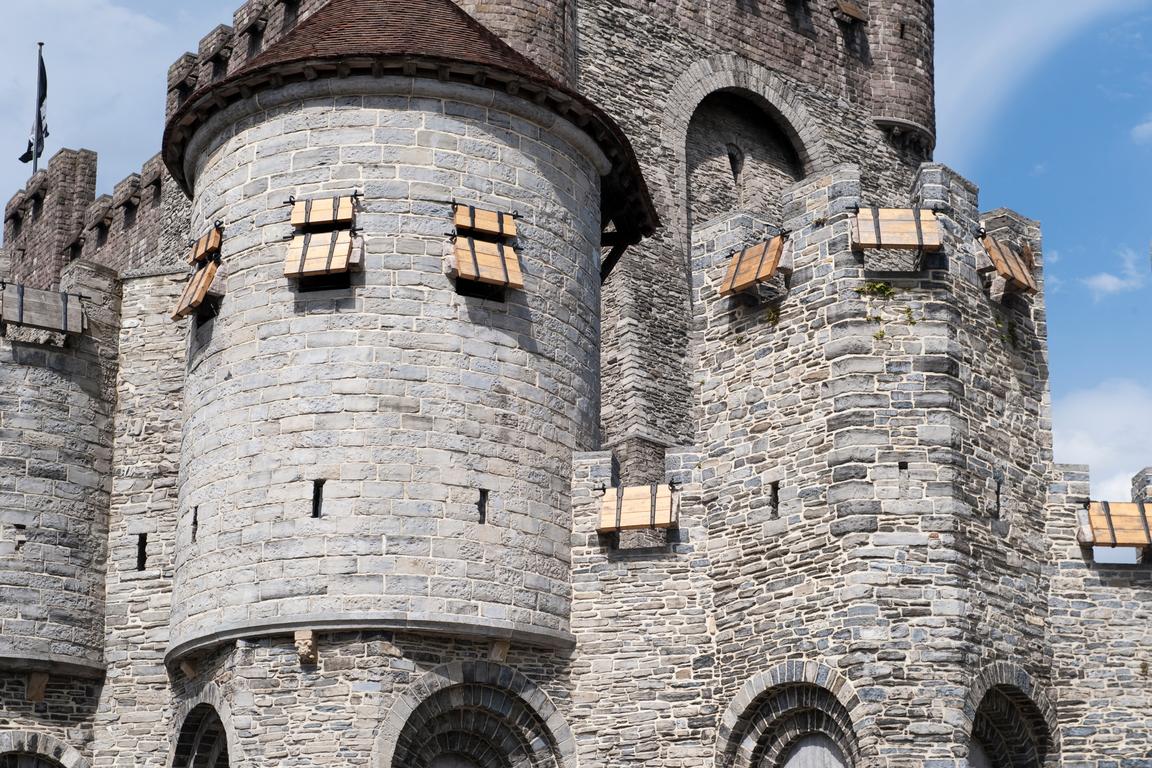 Schon im Jahr 1000 wurde von den Grafen von Flandern mit dem Bau einer Wasserburg in Gent begonnen: Heute zeugt „Gravensteen“, die „Grafenburg“, von der Wehrhaftigkeit und Macht der Genter Adligen mit ihren 24 Türmen und dicken Mauern im Herzen Gents. Die Burg hatte in ihrer Geschichte mehrere Funktionen: Folterkammer in der Zeit der Inquisition, Gerichtshof, Textilfabrik, Baumwollspinnerei – und heute ein Museum mit einer umfangreichen Sammlung an Waffen und Foterwerkzeugen.