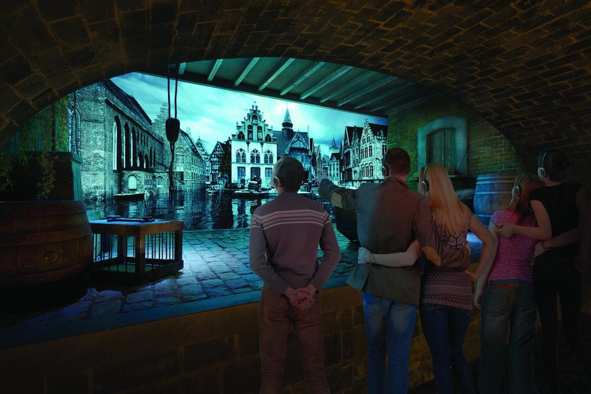 Der rote Faden ist die ergreifende Liebesgeschichte des Lehrlings Jacob und Anna, die den Besucher multimedial mit Filmen, Musik und Düften die Historie im wahrsten Sinn des Wortes sinnlich nacherleben läßt – die Düfte des Badehauses, der herabrieselnder Schnee in den Straßen des alten Brügges oder das schwappende Wasser des belebten Hafens sorgen für eine informative und unterhaltsame Geschichts-Stunde in Brügge. Abschließen kann man den Besuch mit einer Erkundungstour durch die mittelalterliche Architektur mit dem VirtualReality-Erlebnis und einer Bierverkostung im Duvelorium Grand Beer Café.