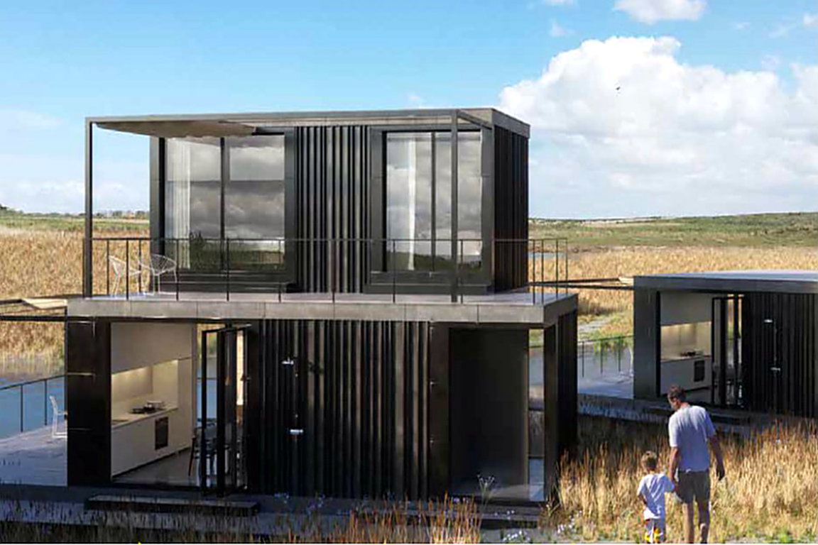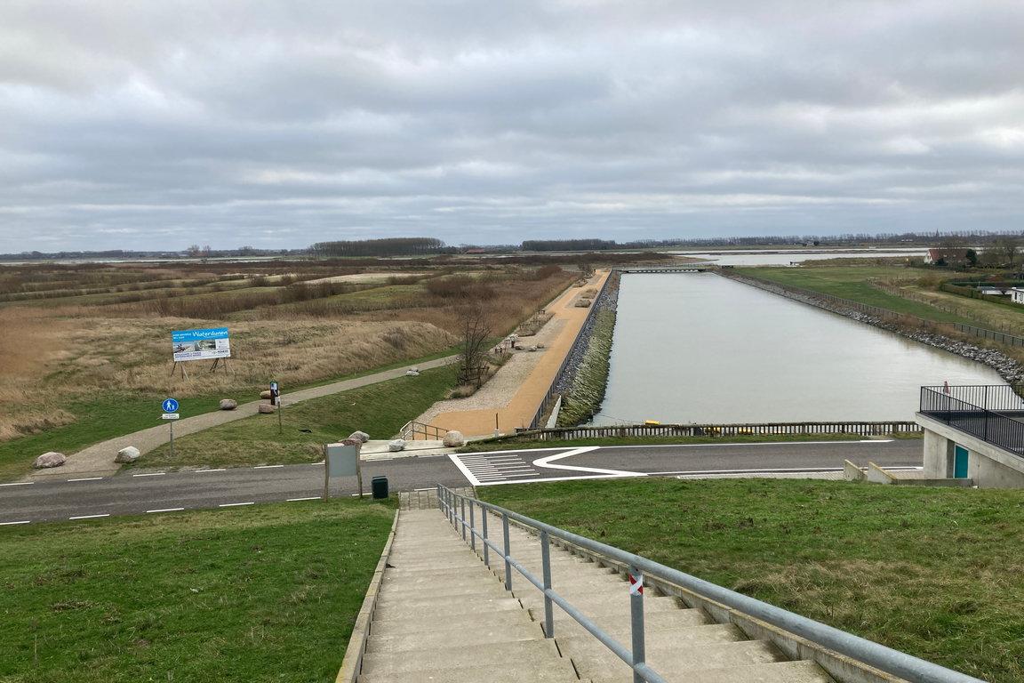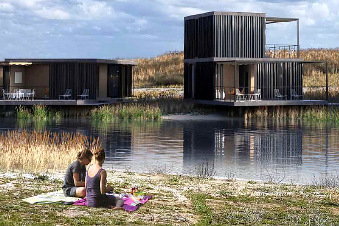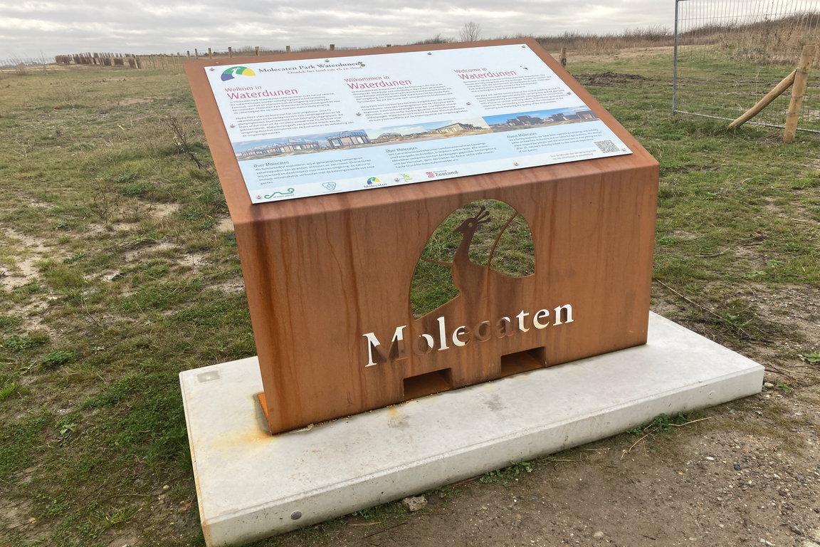 In der neu geschaffenen Natur von „Waterdunen“ entsteht bis 2024 der „Molecaten Park Waterdunen“. Der niederländische Ferienhausparkbetreiber „Molecaten“ errichtet in den „Waterdunen“ eingeschossige Strandhäuser sowie zweistöckige Ferienhäuser und bietet Glamping und Campingmöglichkeiten, die in Harmonie mit der Natur stehen sollen. Der Campingplatz mit 222 Stellplätzen wird bis Frühjahr 2022 angelegt auf und in den Dünen unterhalb des „Panoramaweges“ am Deich zwischen dem Leuchtturm „Nieuwe Sluis“ in Breskens und dem „Getijdenduiker“ bei Grode. Weiter landeinwärts werden 38 Glampinghütten an einem kleinen Bach angesiedelt, der parallel zur Küste verläuft. Direkt am Rande des neu überfluteten Naturgebietes, zum Teil in den Dünentälern und zum Teil auf kleinen Halbinseln der „Waterdunen“ sollen 360 Ferienvillen als vier unterschiedlich große Haustypen für vier bis zehn Personen in nachhaltiger Bauweise errichtet werden. Am vom „Getijdenduiker“ landeinwärtsführenden Kanal mit Boulevard werden 18 Strandhäuser sowie das Hauptgebäude mit Parkreception, Bistro, Snackbar und Einkaufsmöglichkeiten gebaut. Ein separater Ein- und Ausgang soll für eine Verkehrsberuhigung bei der An- und Abreise sowie beim Aufenthalt im Ferienpark „Waterdunen“ sorgen.