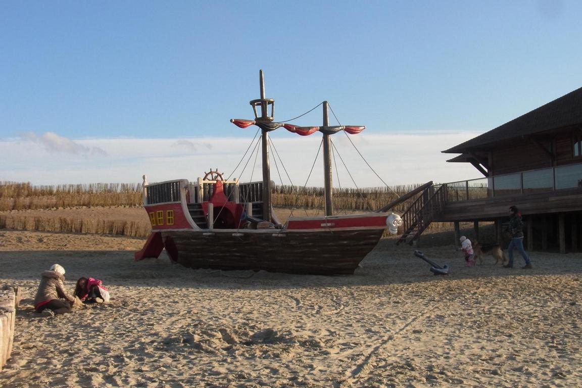 Und der „Piraat“ zum Klettern, Turnen, Entern und Spielen ist auch wieder da: Das bei großen und kleinen Cadzand-Urlaubern beliebte Spielschiff aus Holz hat wieder seinen Anker an der Seite des Strandpavillon „De Piraat“ ausgeworfen und freut sich auf tobende Kinder und dabei sich entspannende Eltern.