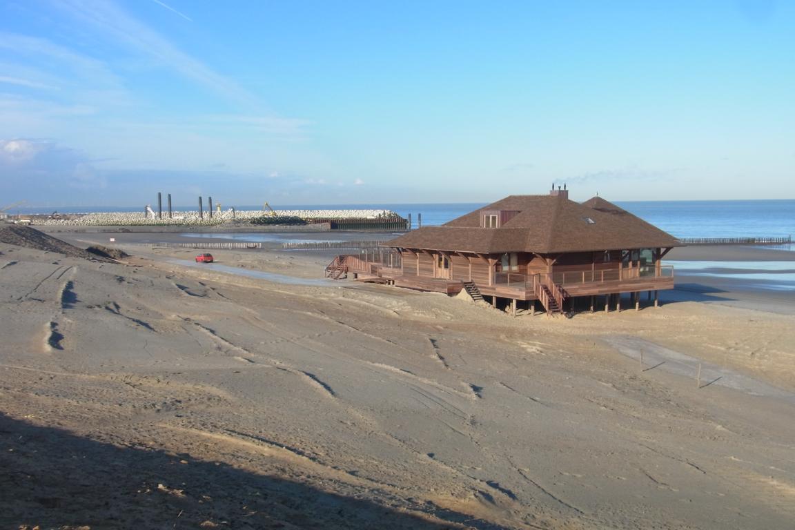 Nach den Deicherhöhungen und Umbaumassnahmen der Rad- und Spazierwege vor Cadzand-Bad hat der Strandpavillon „De Piraat“ seit Anfang 2016 wieder seinen angestammten Platz am Strand gefunden: Quasi zentral gegenüber dem Marktplatz „Duinplein“ von Cadzand-Bad gelegen und erreichbar über die Dünenübergänge „Kievitte“ und „Villa Leopold“. Das Restaurant ist unter einer aussen wie innen großzügig mit dunklem und hellem gestalteten Pyramide untergebracht – von den Terrassen haben Gäste einen tollen Ausblick auf die Nordsee und den Strand – inbesondere bei Sonnenuntergang im Westen Richtung Knokke-Heist.