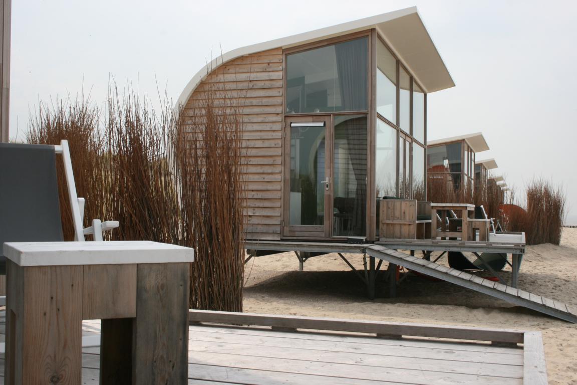 Morgens von dem Geplätscher der Wellen am Strand von Groede geweckt werden? Abends beim Einschlafen die Lichter der Schiffe zählen? Tagsüber vom Sofa in wenigen Schritten am Strand sein? In einem der zehn Strandwohnhäuschen von Strandcamping Groede ist das täglich möglich. Die aus Holz gebauten, 25 Quadratmeter großen Häuser stehen direkt am Sandstrand von Groede und bieten aufgrund ihrer offenen Bauweise eine quasi permanente Panoramasicht auf Strand und Nordsee. Sie sind mit allem Komfort ausgestattet wie einer kompletten Küche, einem Badezimmer mit Dusche und WC, einem Hochbett mit beeindruckendem Blick auf das Meer, einem Kinder-Etagenbett und einer Schlafcouch für zwei Erwachsene.