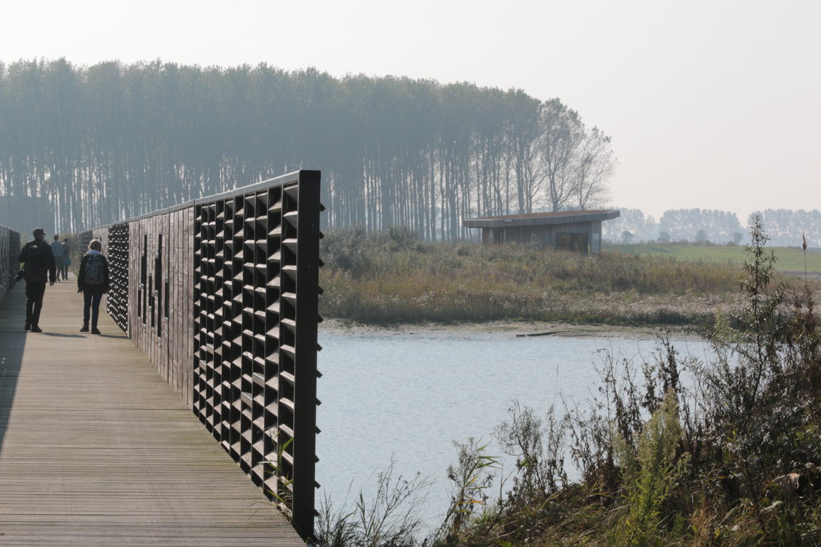 Die mit Sand bzw. Split befestigten Routen sind abwechslungsreich angelegt: Sie führen über Wiesen und durch Dünen, leiten mit Brücken über die Wasserflächen – immer mit weitem Blick über das Naturgebiet und zum Teil auf den Leuchtturm „Nieuwe Sluis“. An den Routen bieten Vogelbeobachtungshütten („Vogelkijkhut“) und Brücken Besuchern – darin oder dahinter „getarnt“ – die Möglichkeit, die rastenden, brütenden oder fliegenden Vögel für diese ohne Störung zu beobachten. Mehrsprachige Schautafeln erklären Interessierten Fauna und Flora und das „Waterdunen“-Konzept.