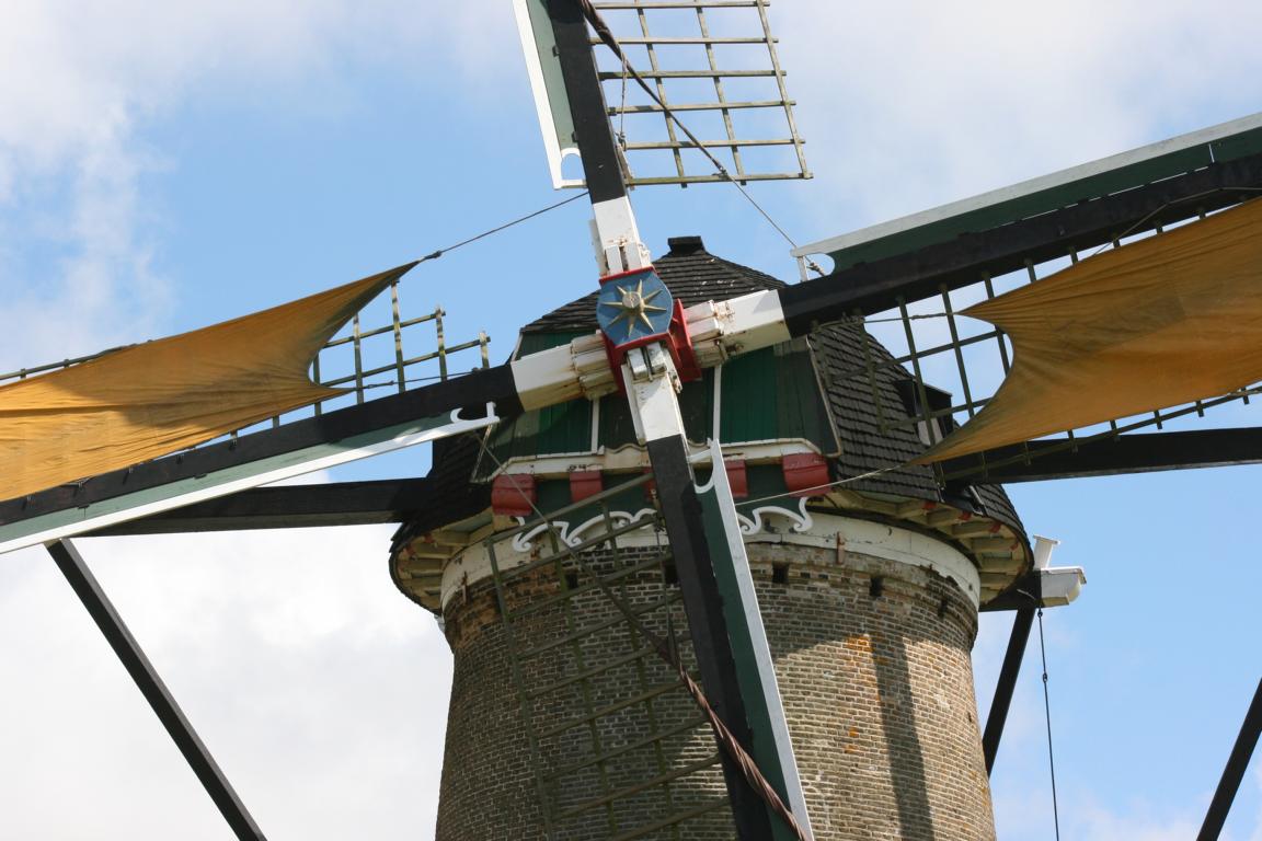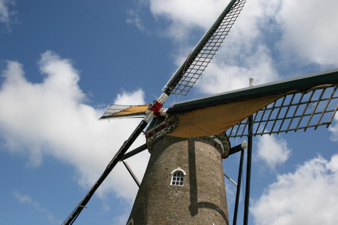 Auf einem Hügel – einst am Dorfrand von Nieuwvliet, heute direkt an einem Campingplatz gelegen – bietet die Windmühle in Nieuwvliet-Dorp ein optisches Highlight. Ihre gewaltigen Flügel wirken aufgrund der nahe stehenden Gebäude noch kraftvoller als sie es aufgrund ihrer Länge von fast 24 Metern schon sind. Und zu den Besuchszeiten kann man live verfolgen, wie der Müller, die Mühle und ihre vier Flügel der Windrichtung nach ausrichtet.